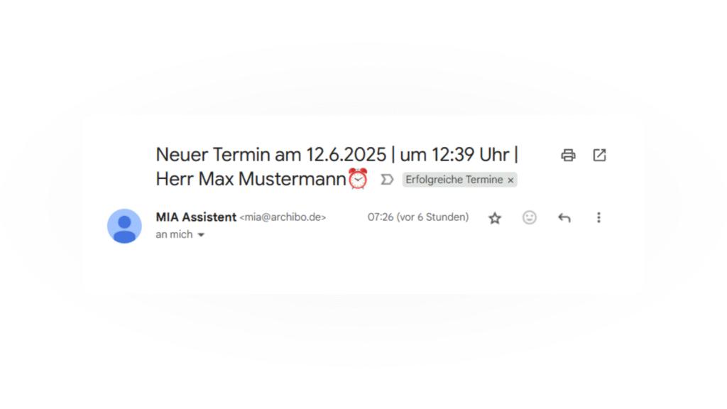 Nach jedem Anruf erhalten Sie automatisch eine strukturierte E-Mail mit allen relevanten Gesprächsdaten und einer KI-generierten Zusammenfassung des Transkripts.